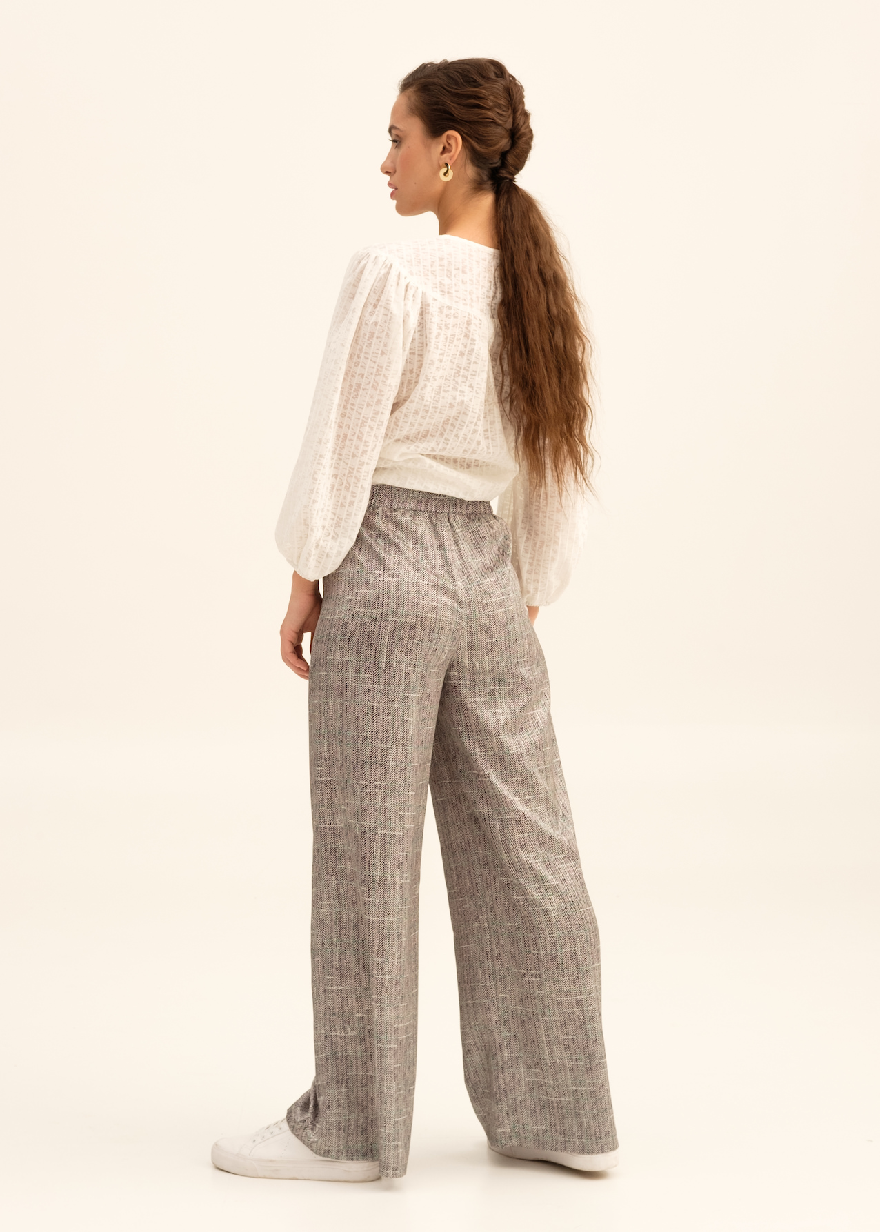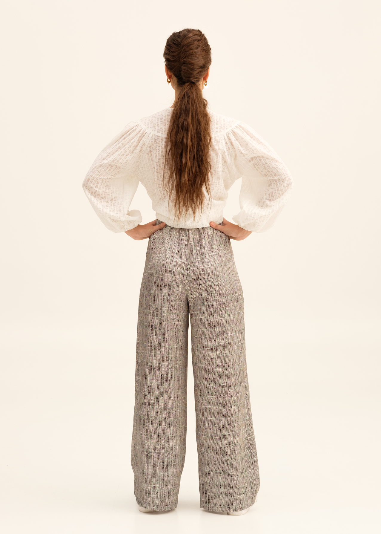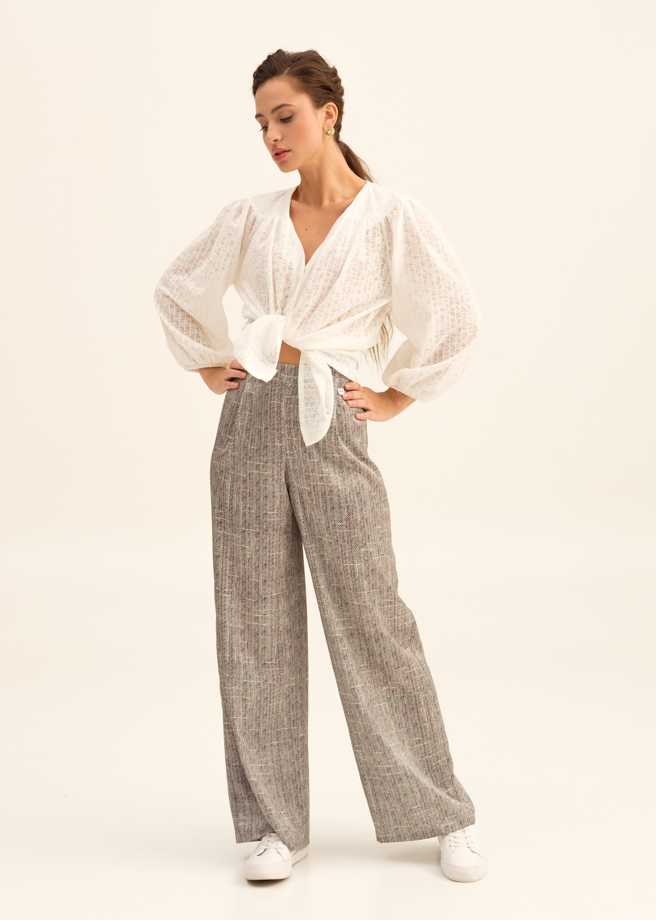 Прямая блузка на пуговицах из хлопка деворе с узорно-рельефной фактурой. V-образный вырез, пышный рукав длинной 5/8