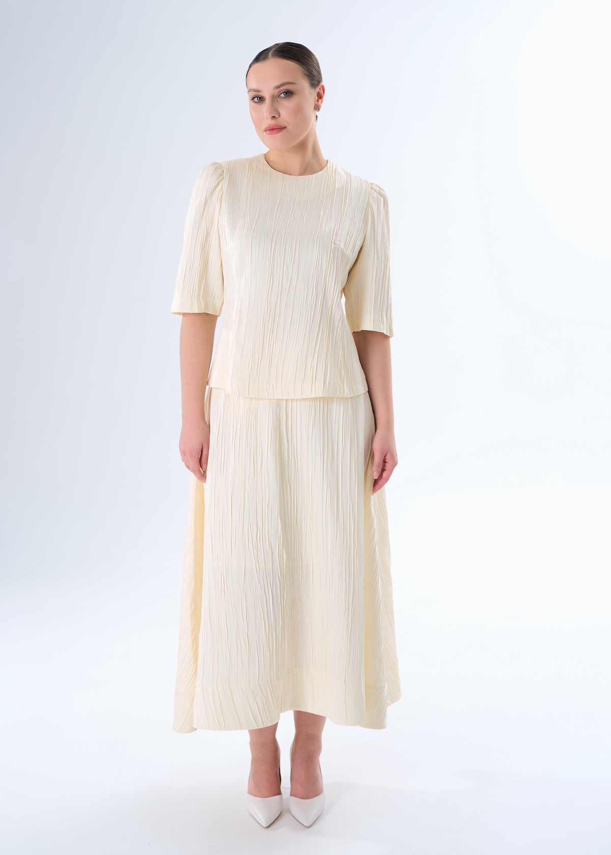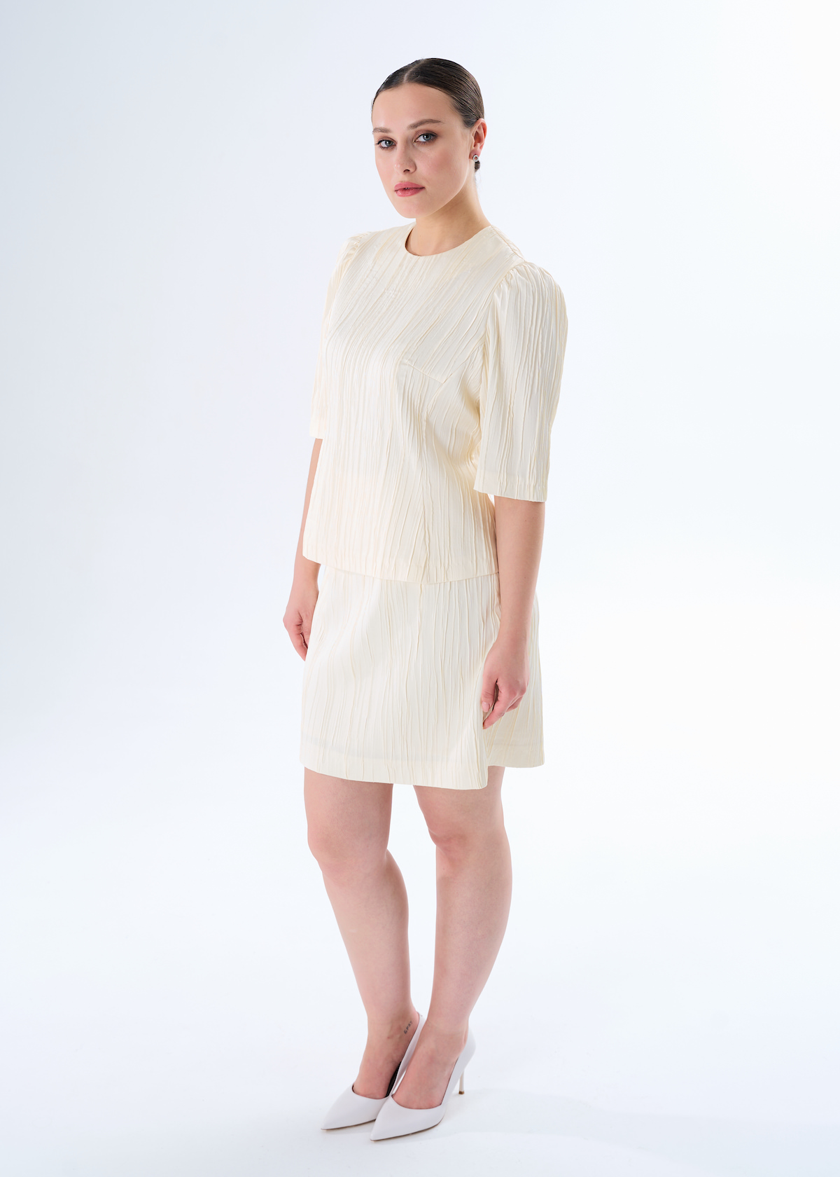 Блузка молочная приталенная