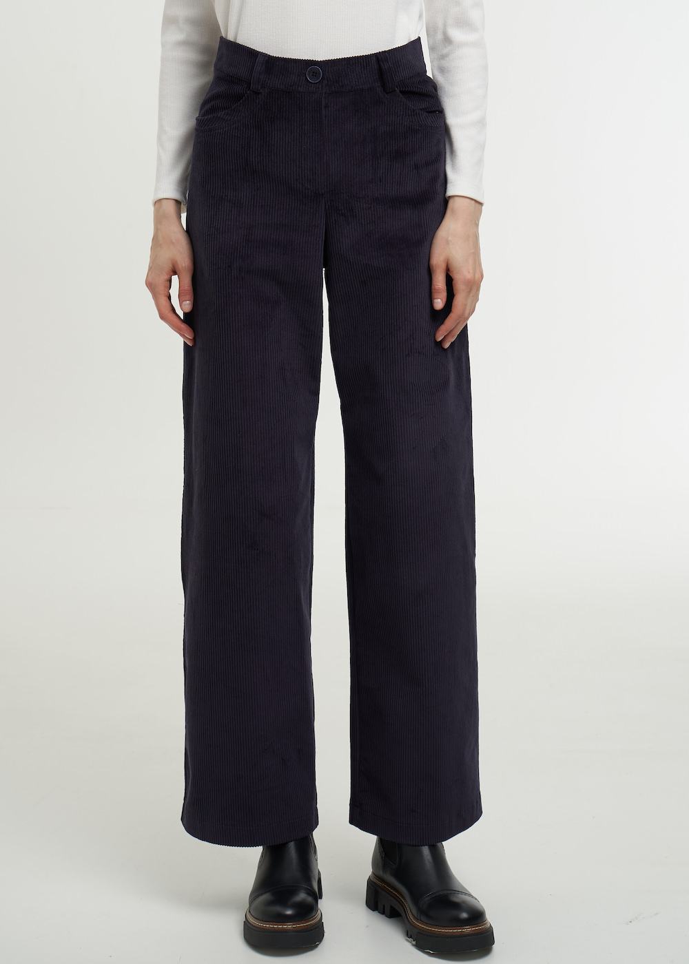 Темно синие брюки из крупного вельвета