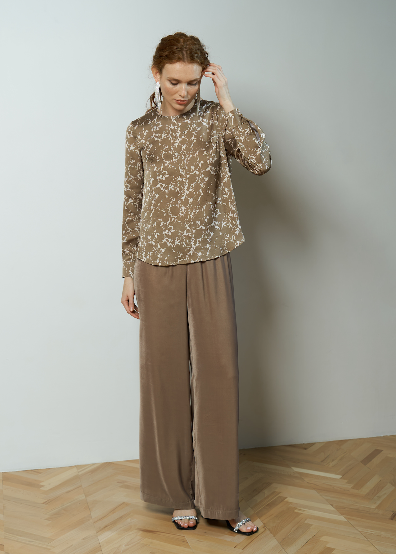 Брюки бархатные бежевые женские