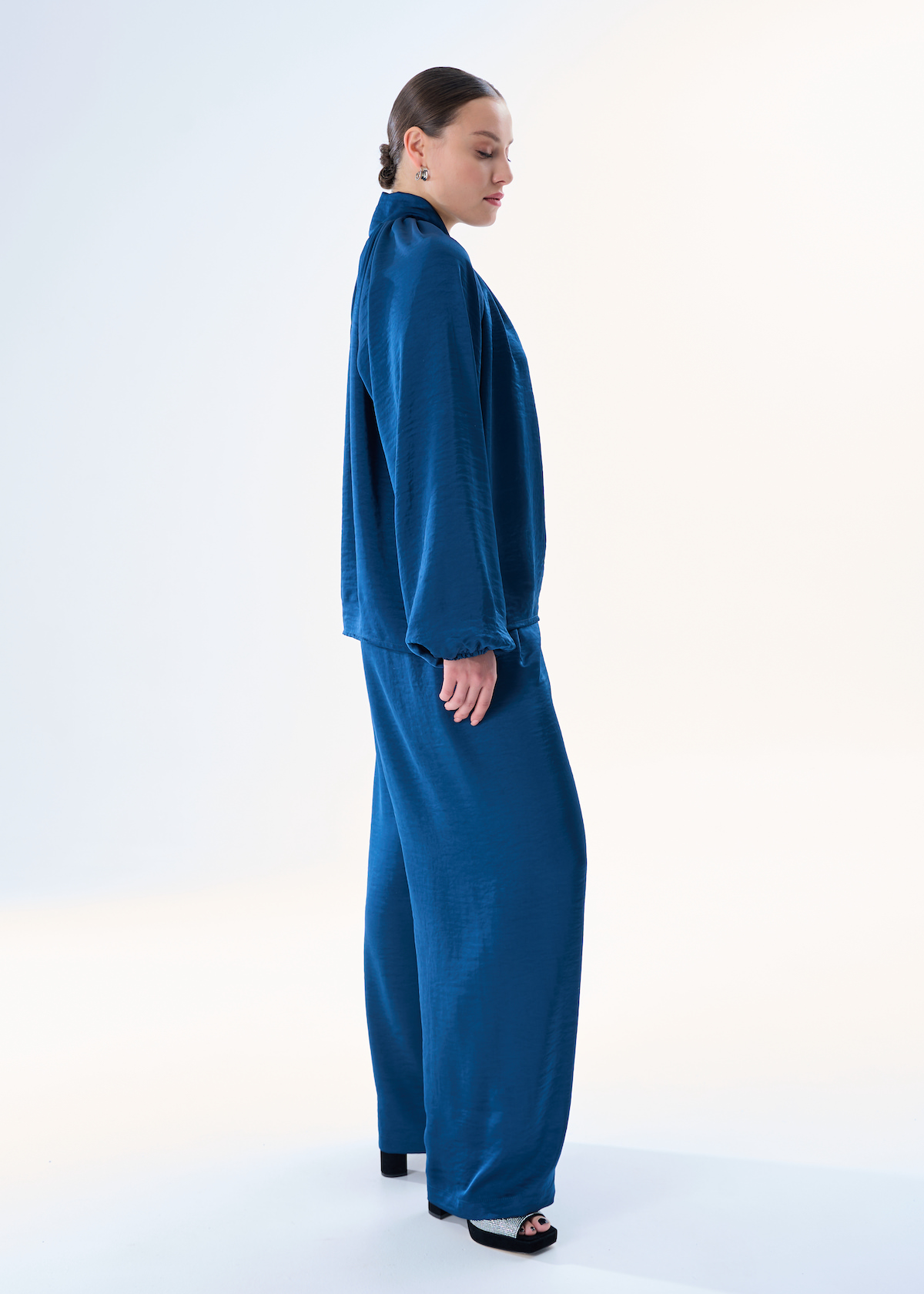 Брюки с защипами синие