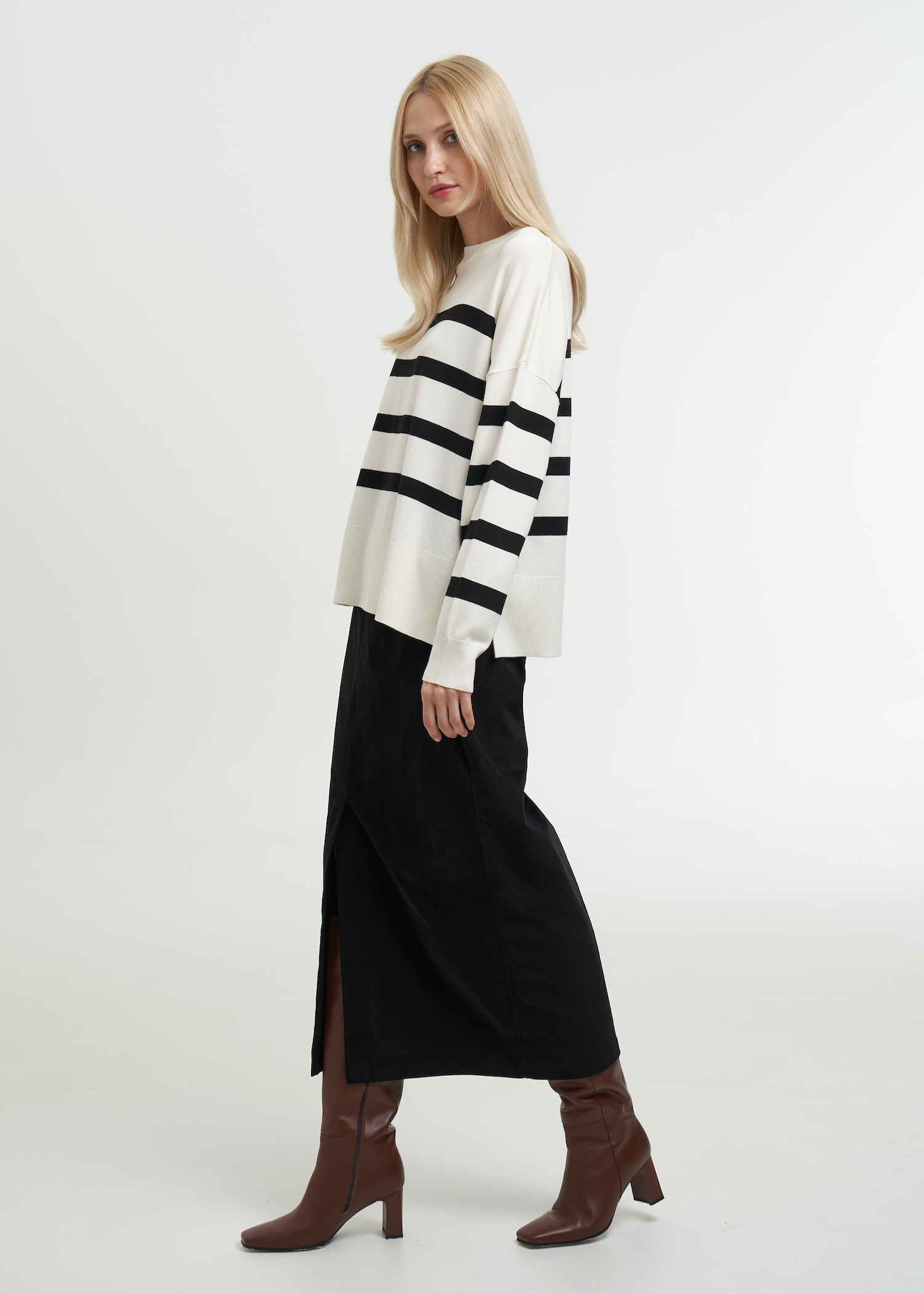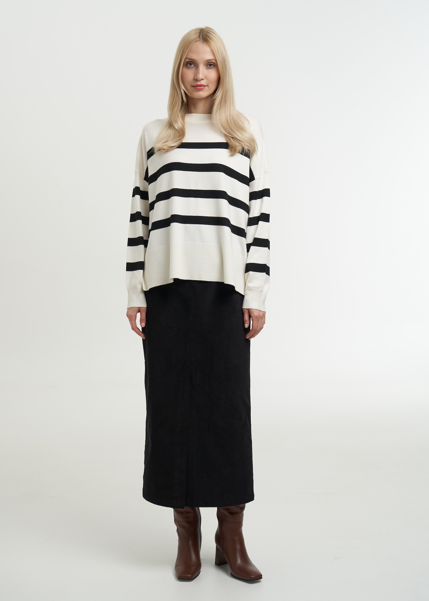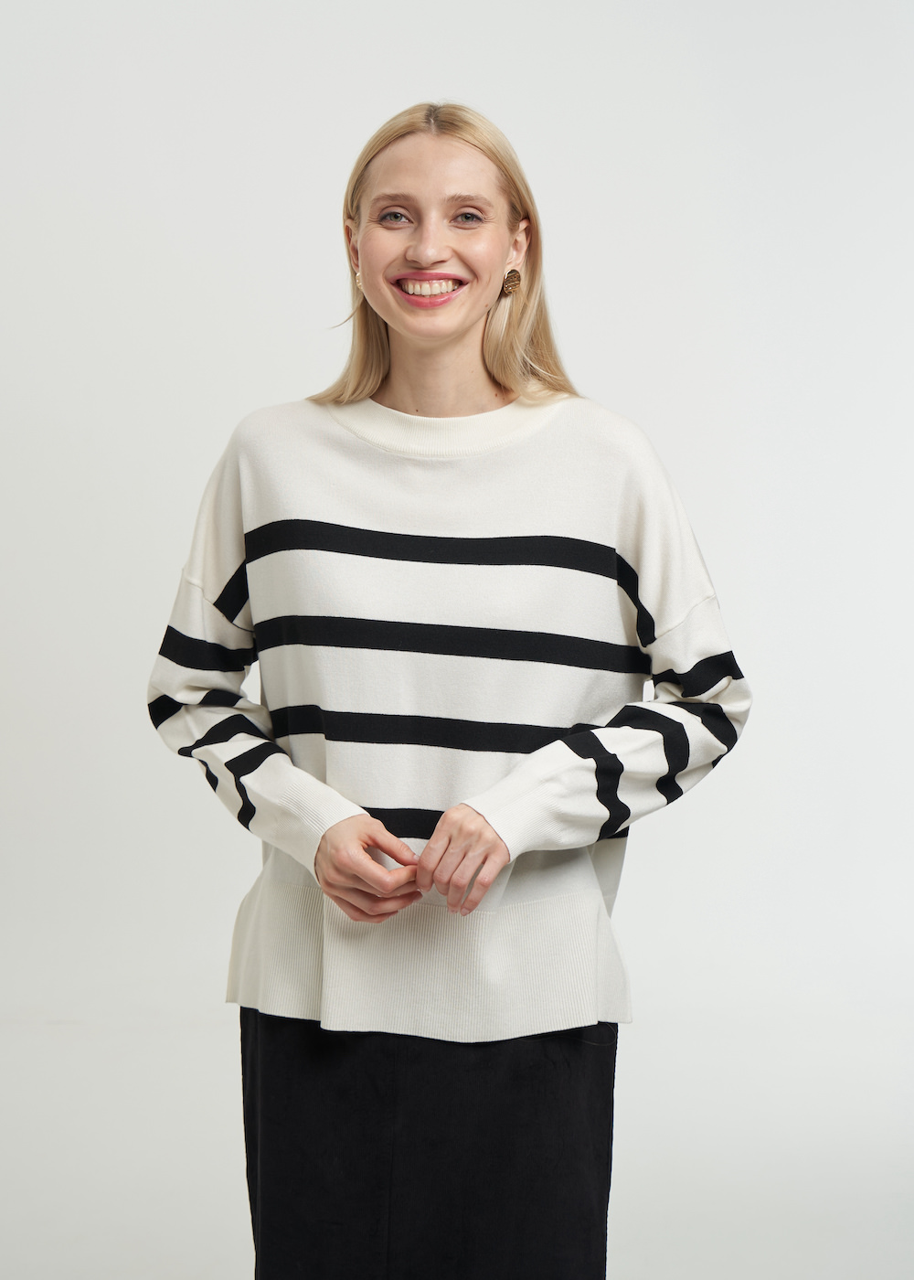 Стильный теплый джемпер в полоску
