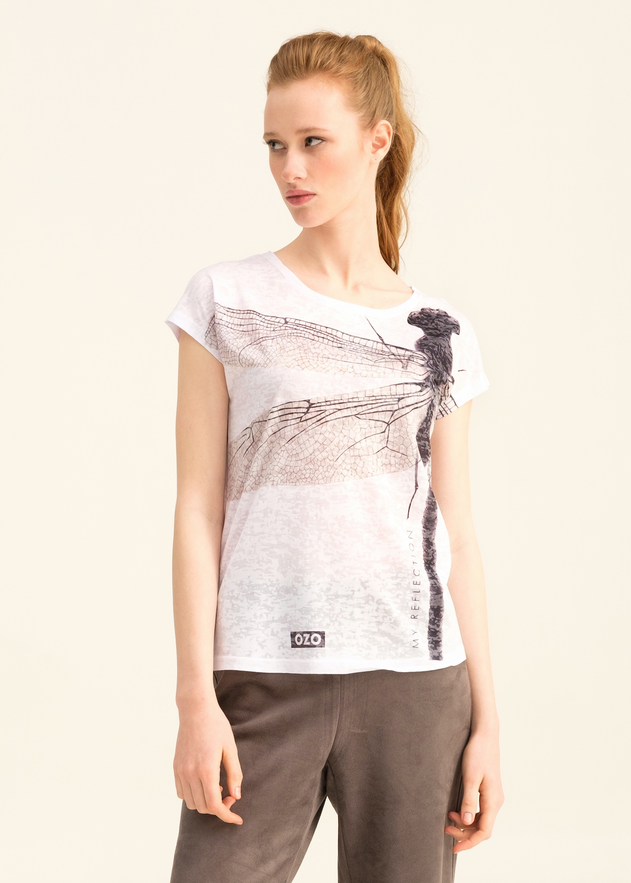 Футболка из смесового трикотажа деворе специальной разработки. Ткань невесомая, легко дышит и отлично держит цвет. Авторский принт спереди и на спинке с печатью по готовому изделию.