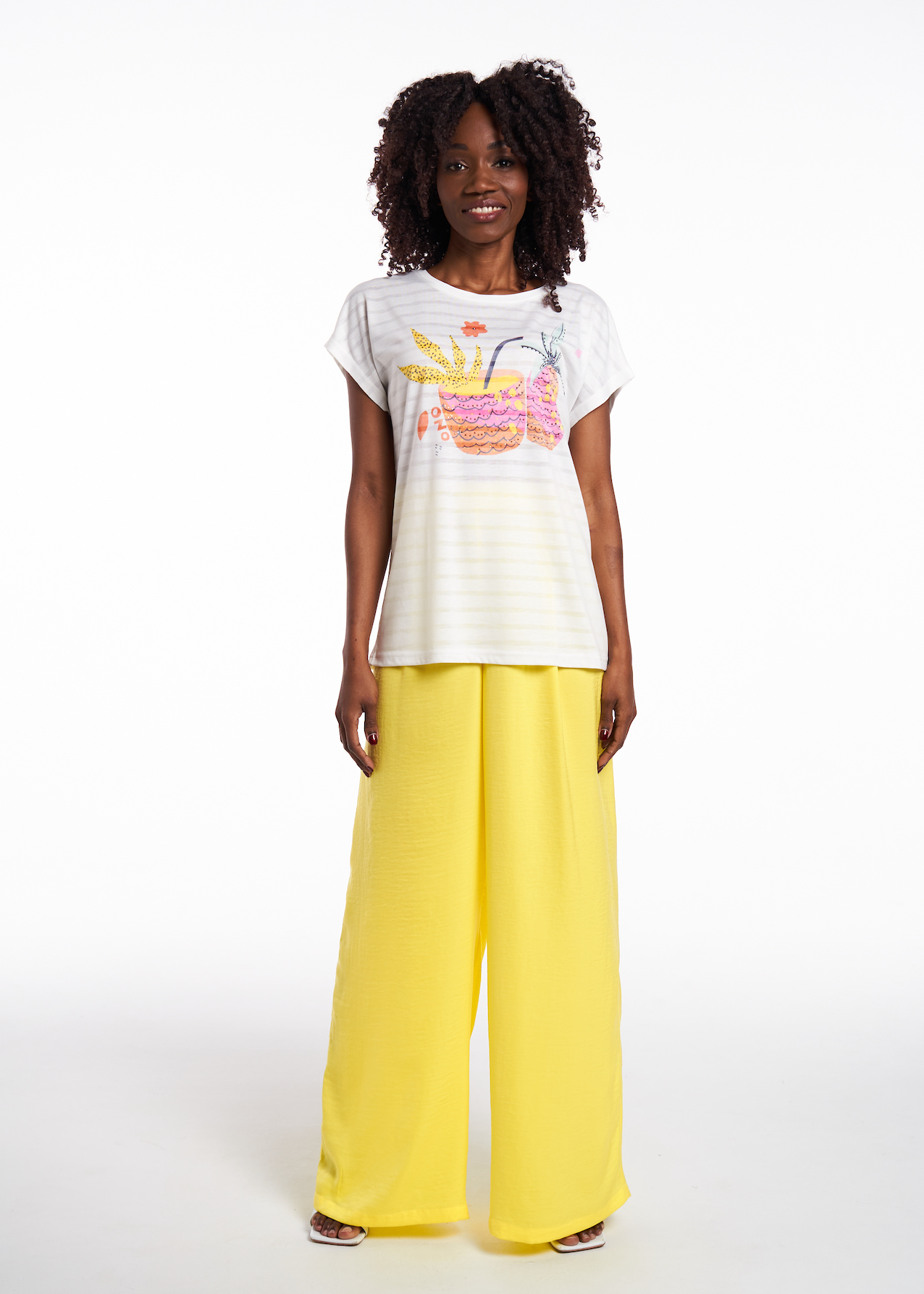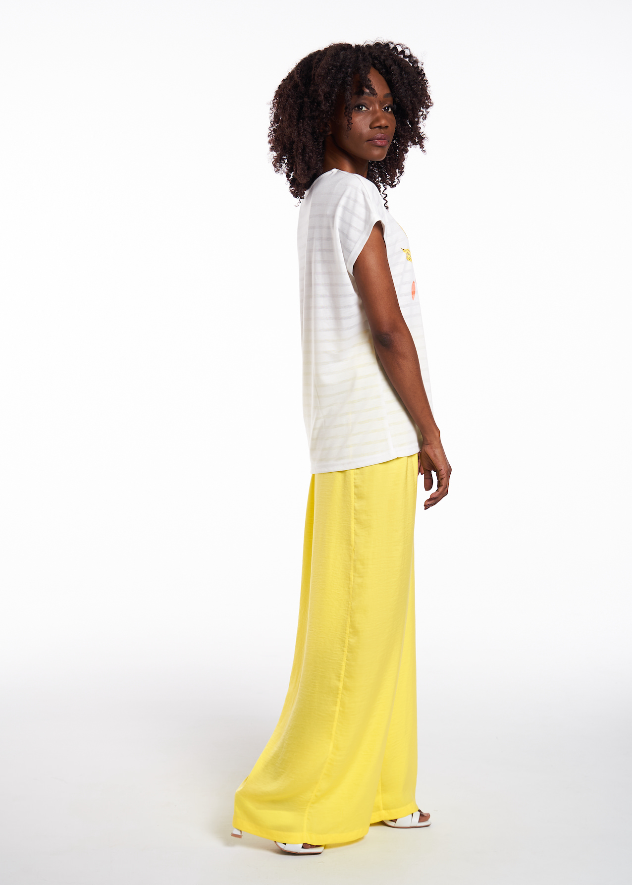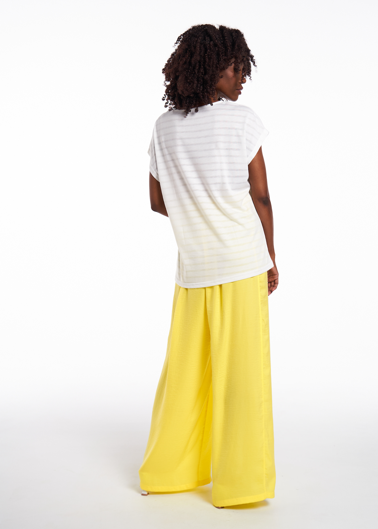 Полосатая футболка из смесового трикотажа специальной разработки. Ткань невесомая, легко дышит и отлично держит цвет. Авторский принт спереди и на спинке с печатью по готовому изделию.
