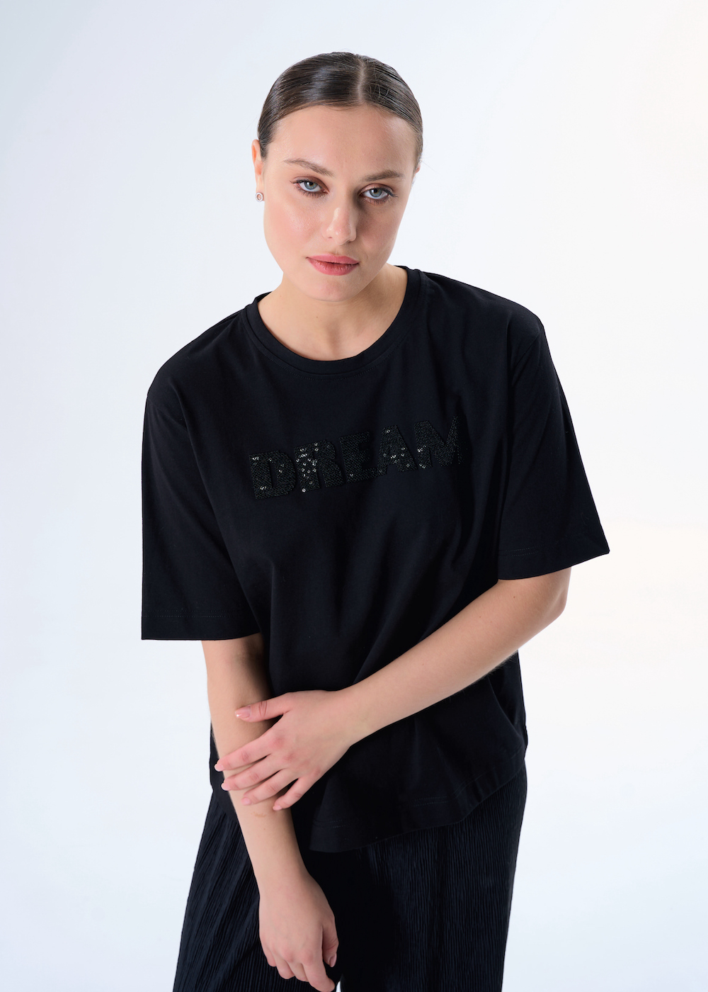 Футболка с принтом из пайеток