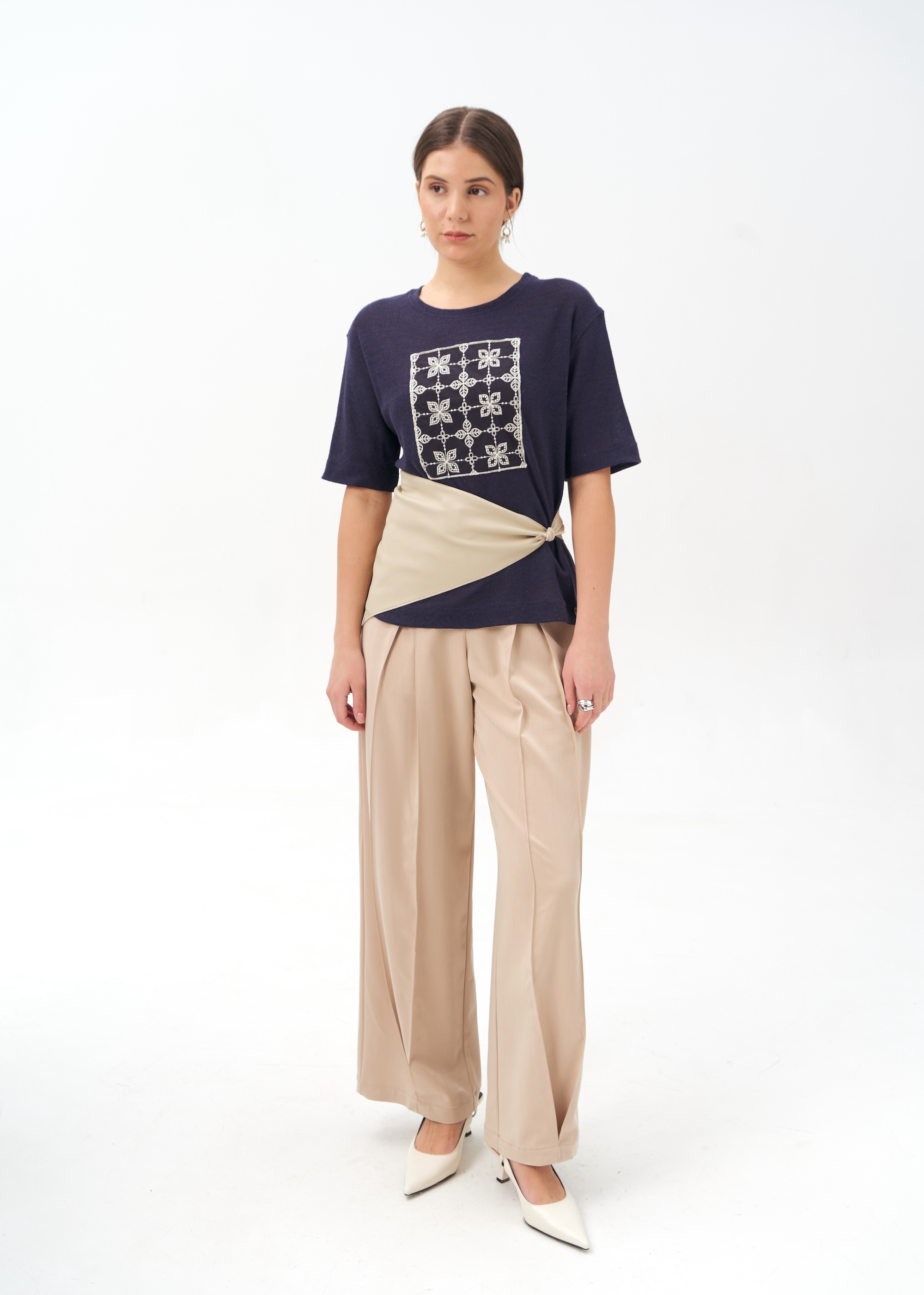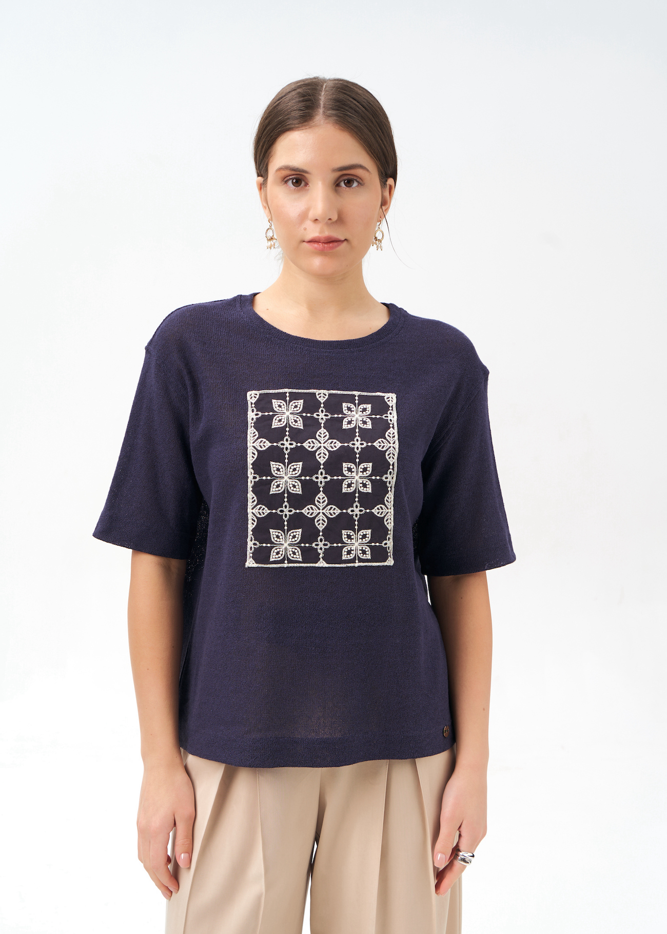 Синяя футболка с вышивкой кроше