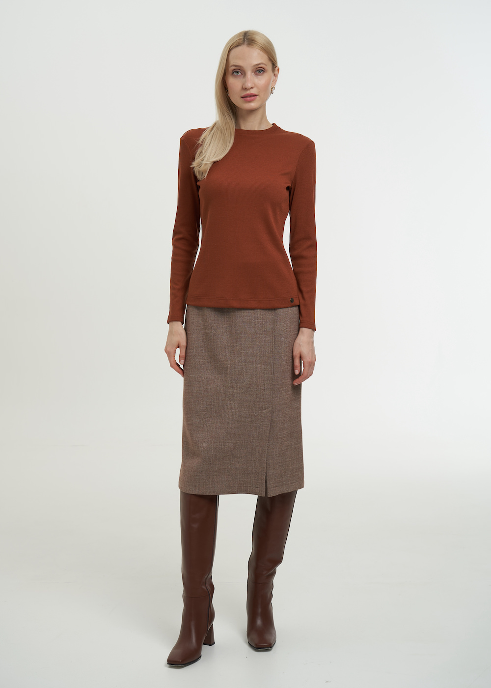Джемпер с круглым воротом и длинным рукавом