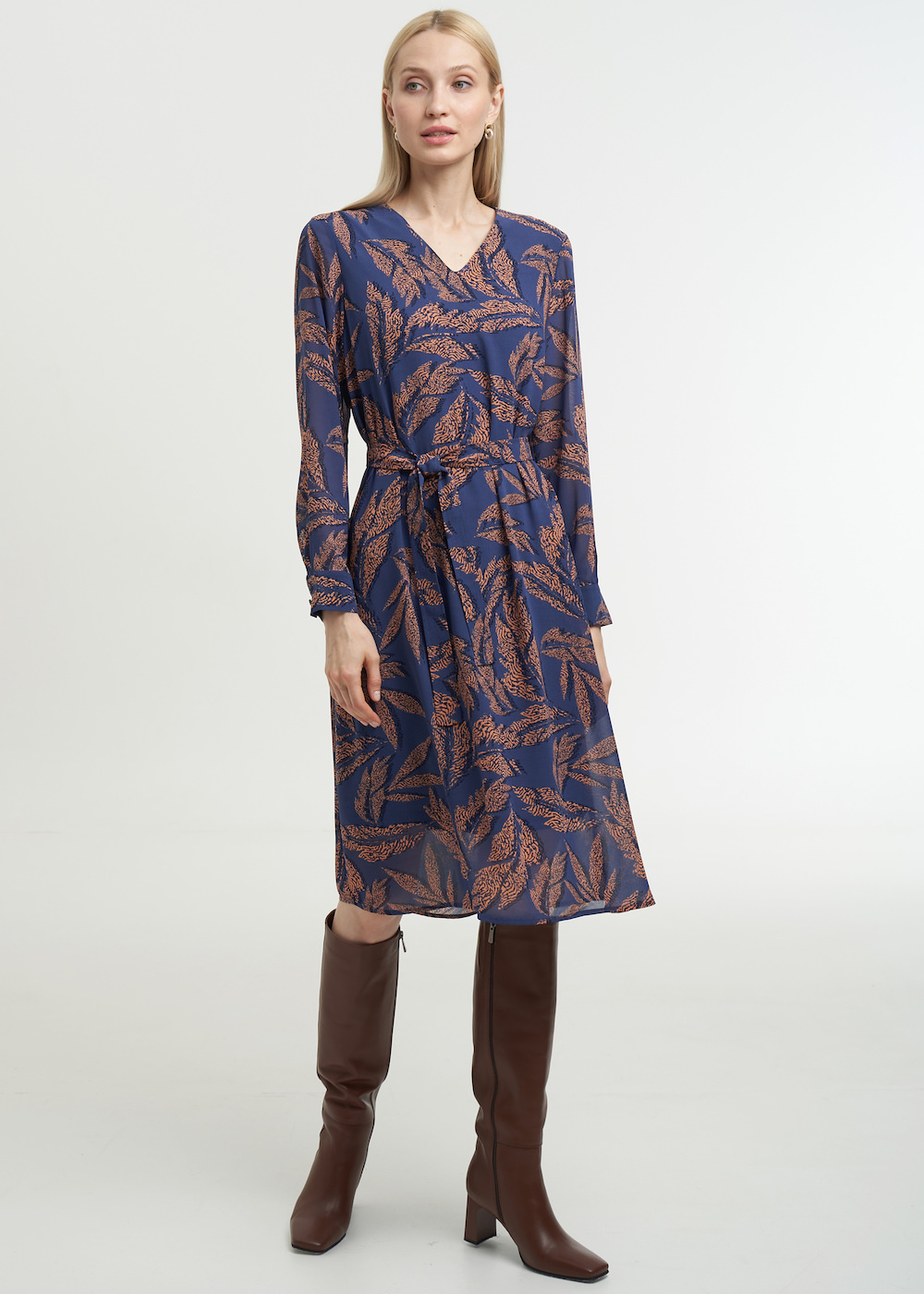 Платье с V-вырезом и поясом
