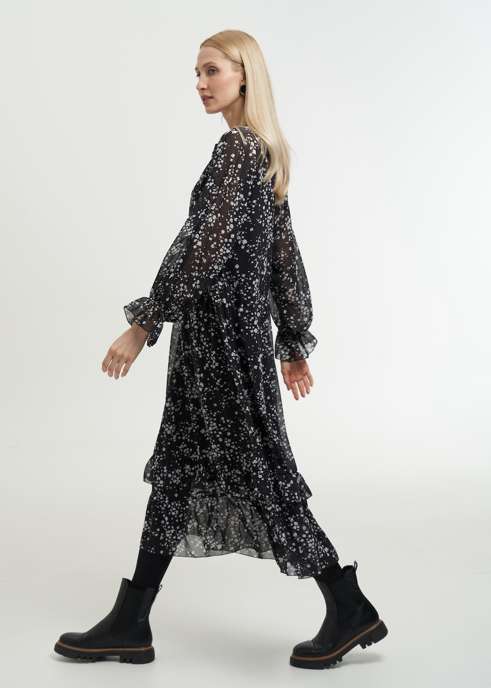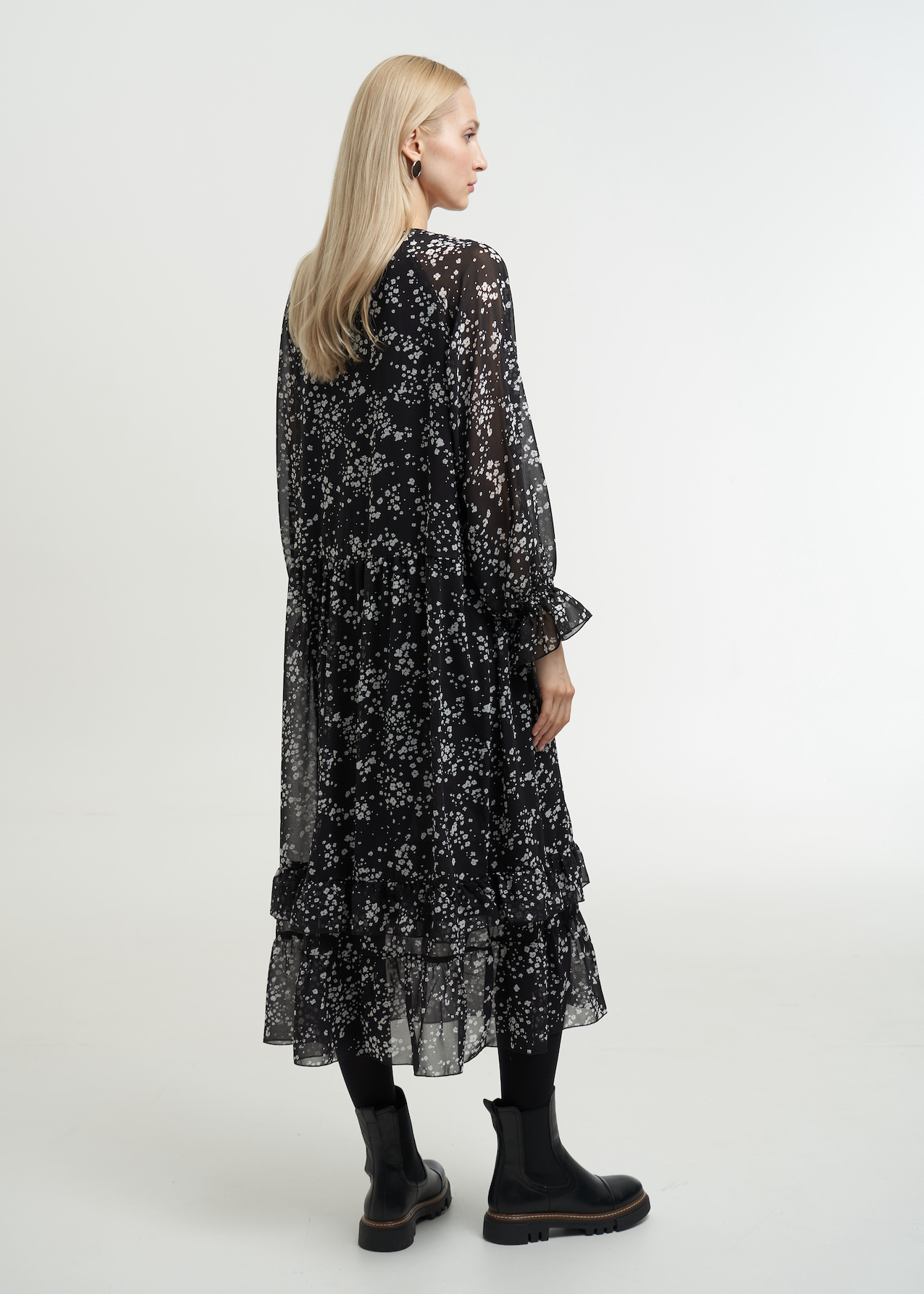 Черное чайное платье с рукавами