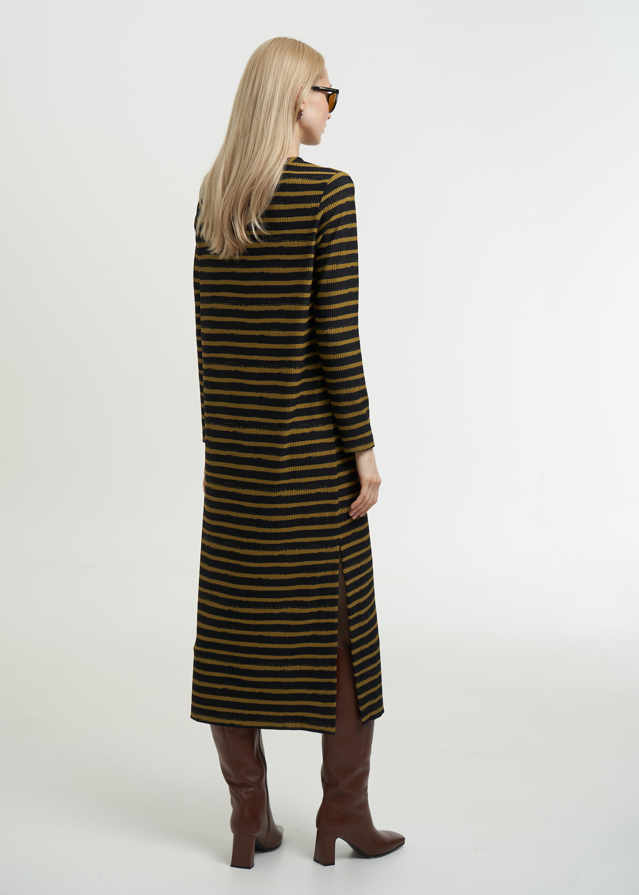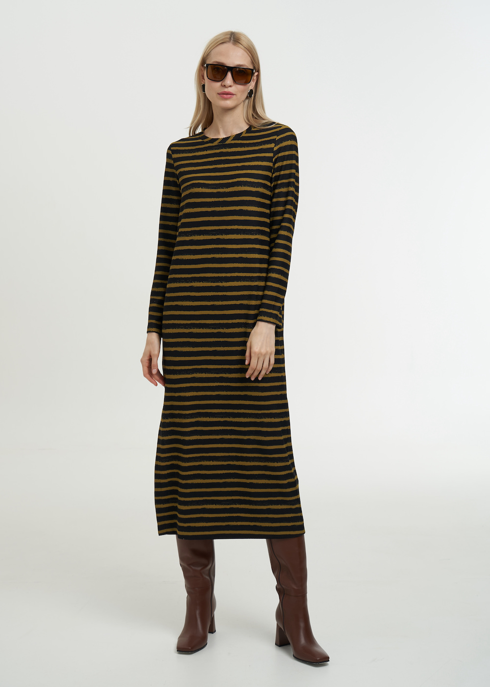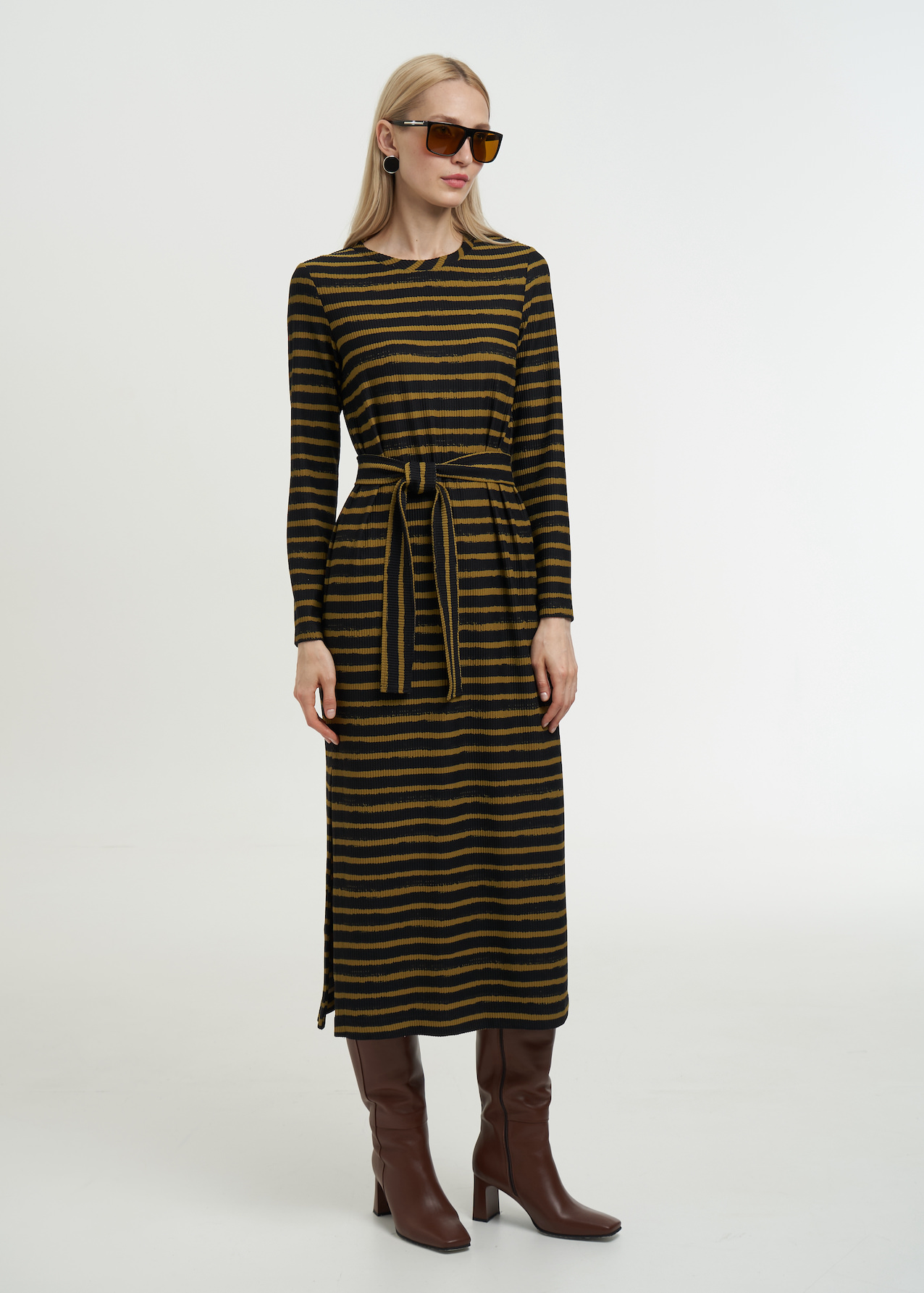 Коричневое платье в полоску