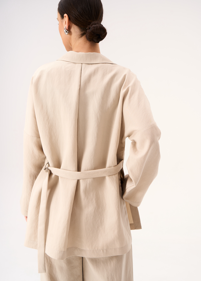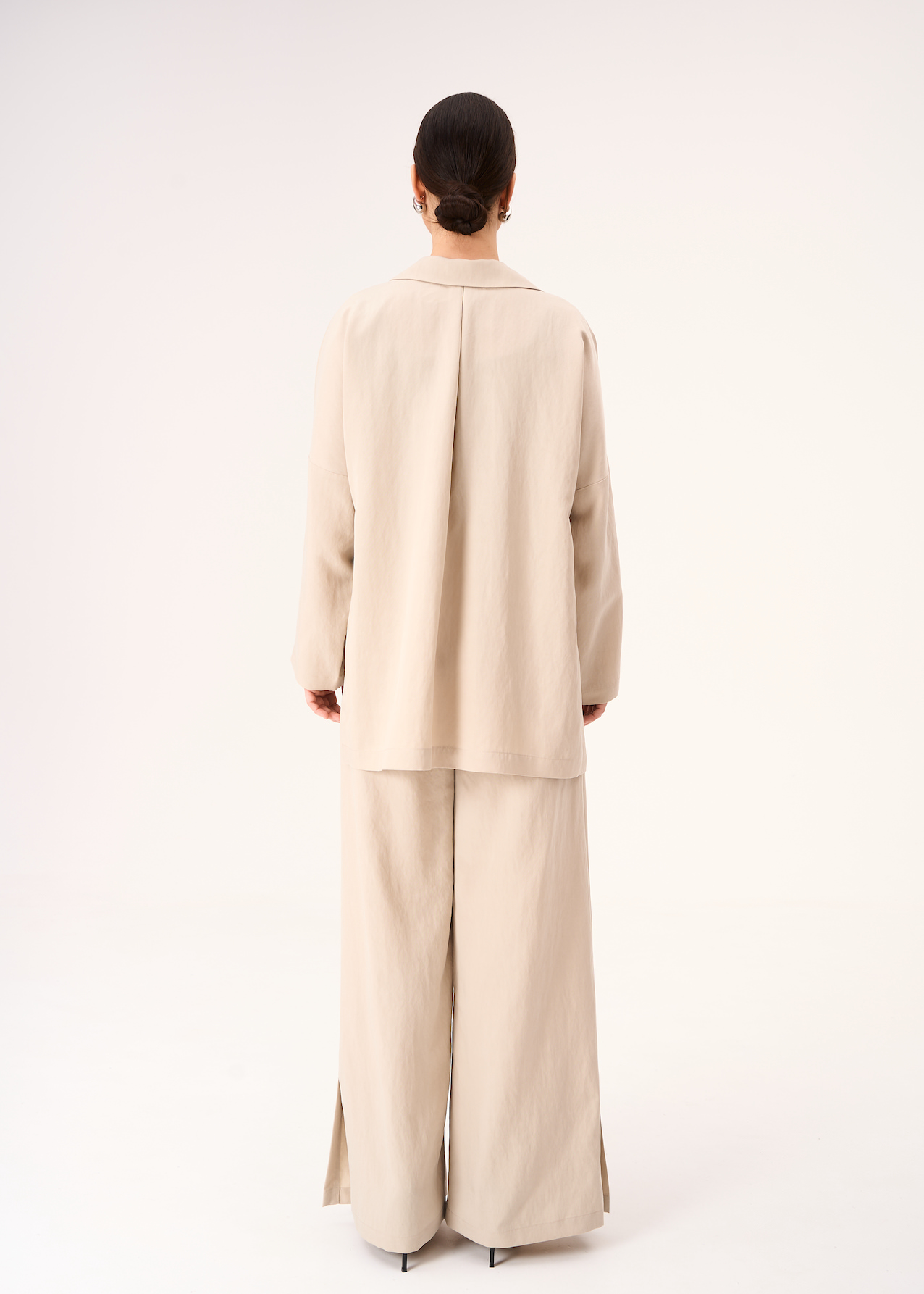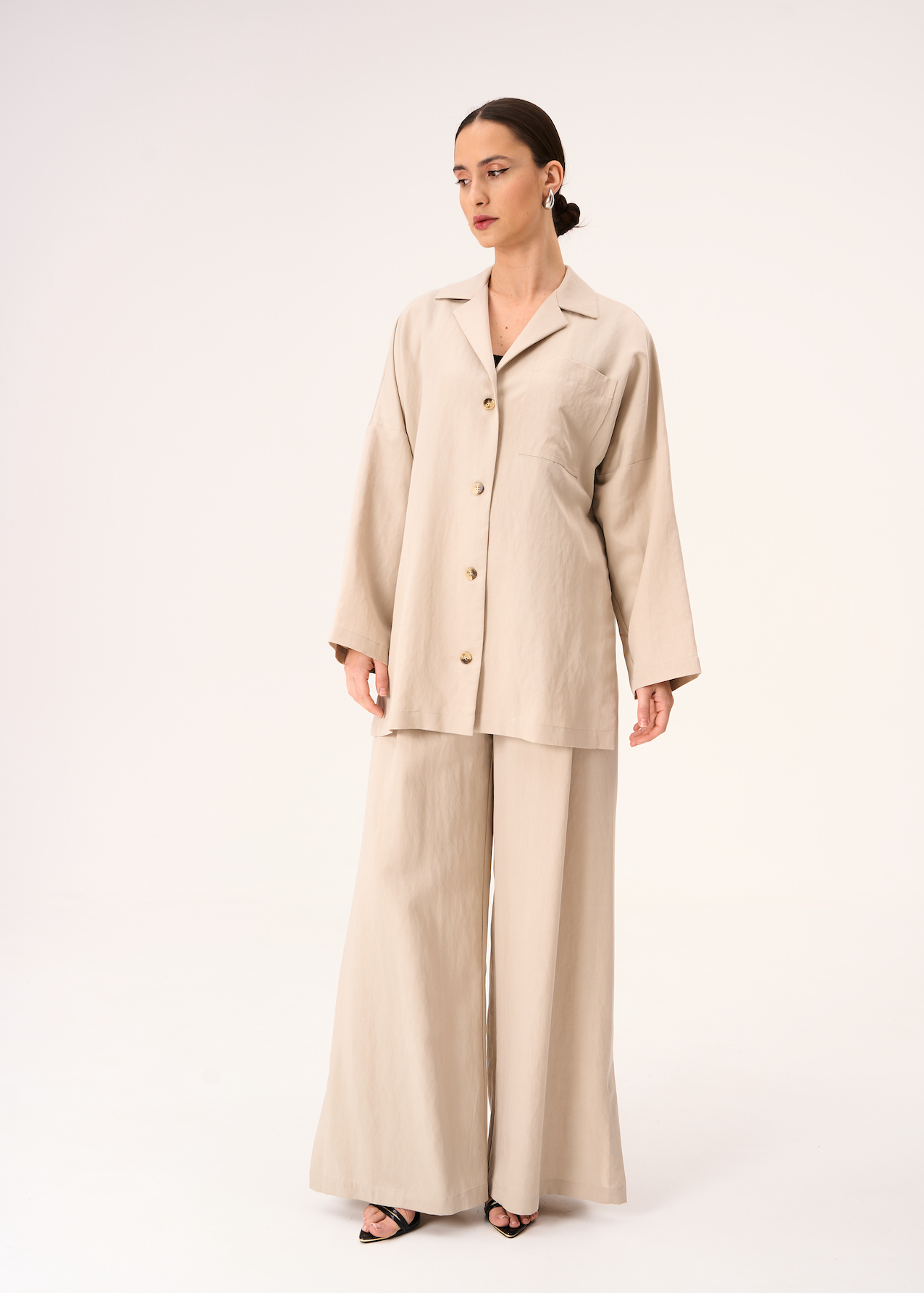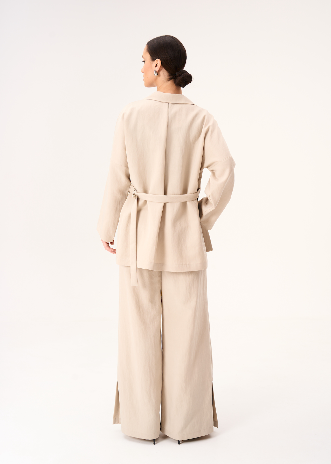 Рубашка с поясом. Удлиненная модель с разрезами по бокам, застежка на пуговки. Рубашка с отложным воротником и лацканами, спущенная линия плеча с широкими рукавами полной длины без манжет.
