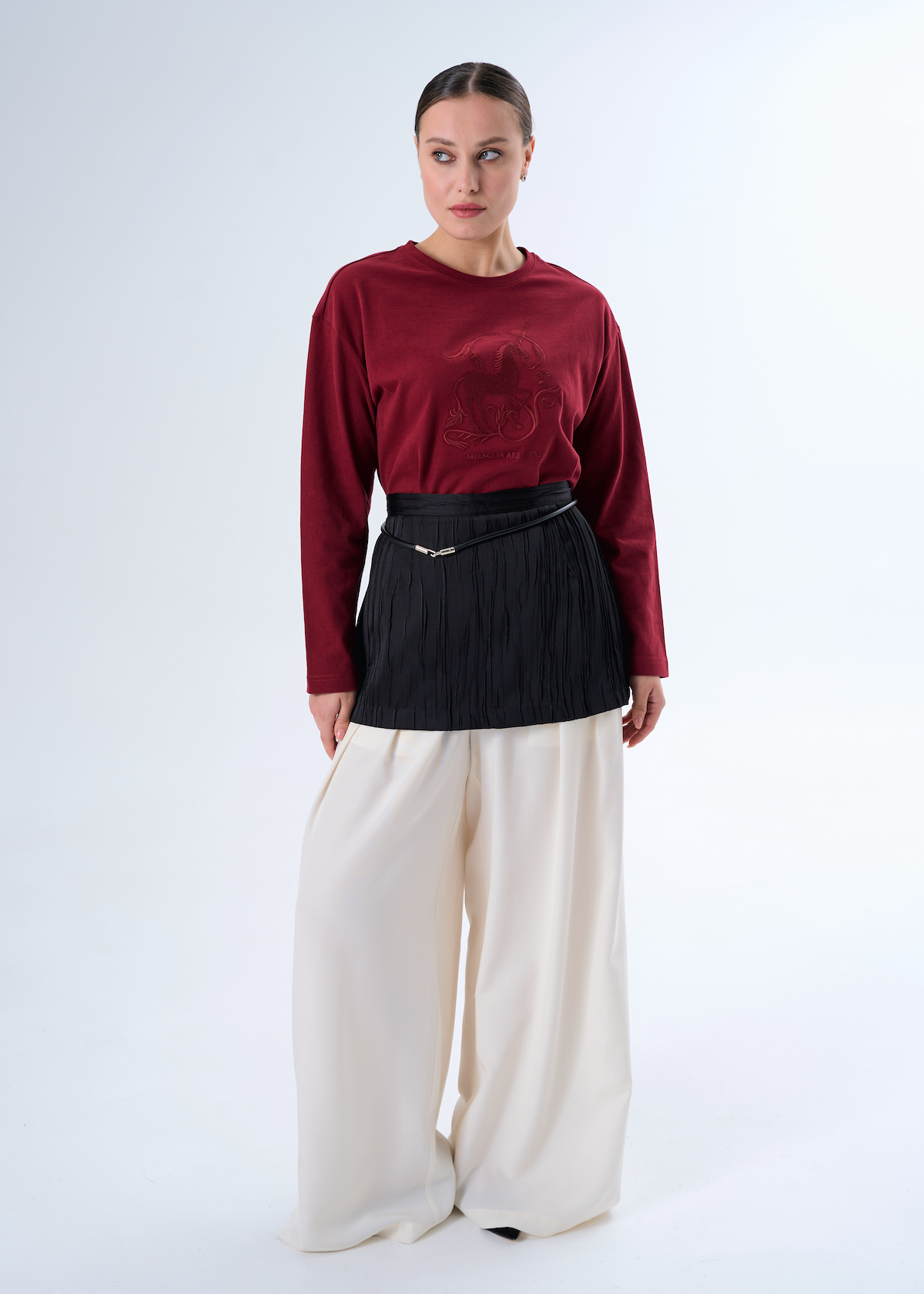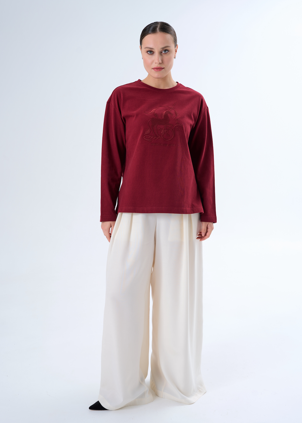 Лонгслив хлопковый. Модель прямого кроя с круглым вырезом со спущенной линией плеча и длинным рукавом без манжет. Лонгслив с принтом в тон изделия. Без застежек.