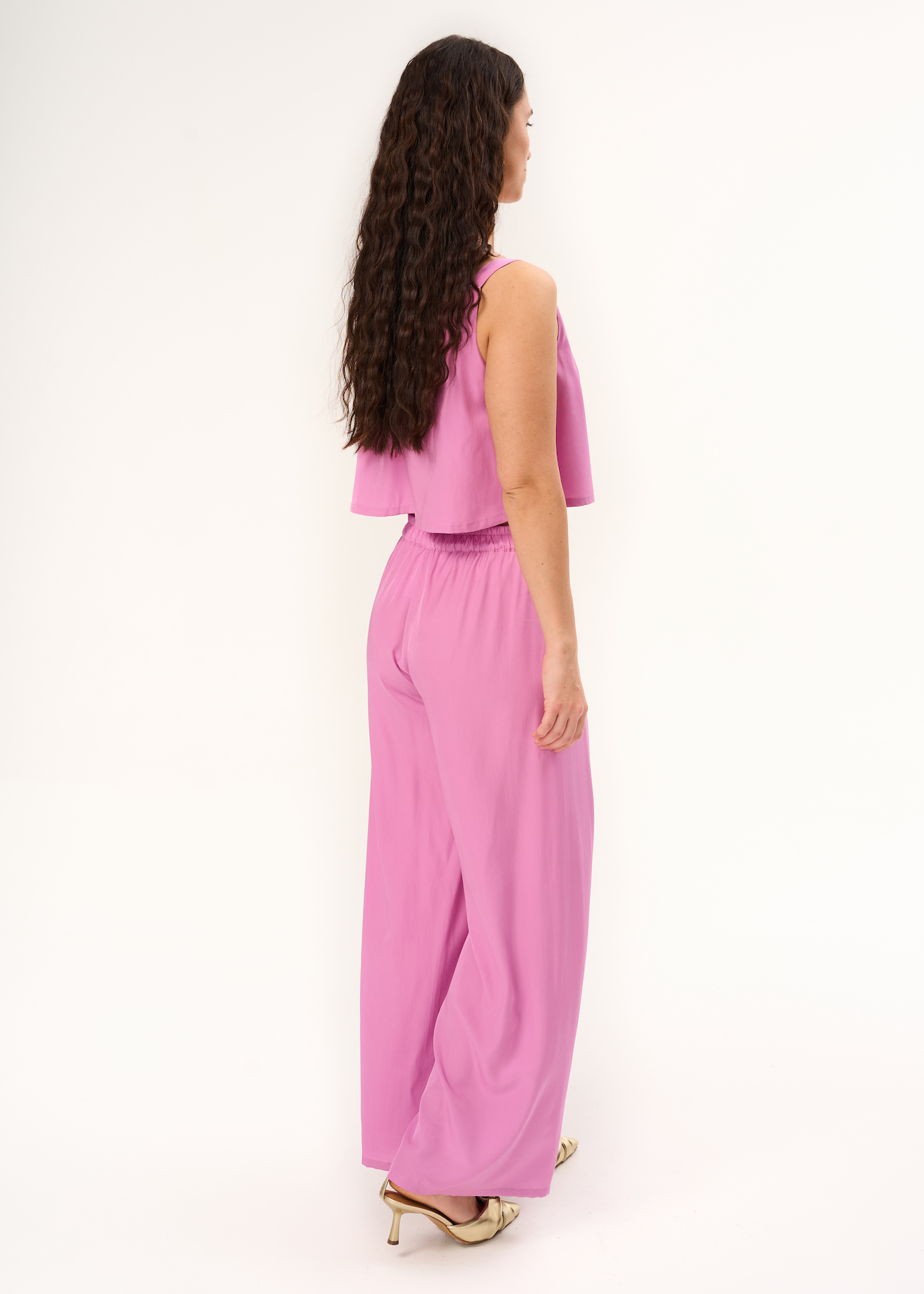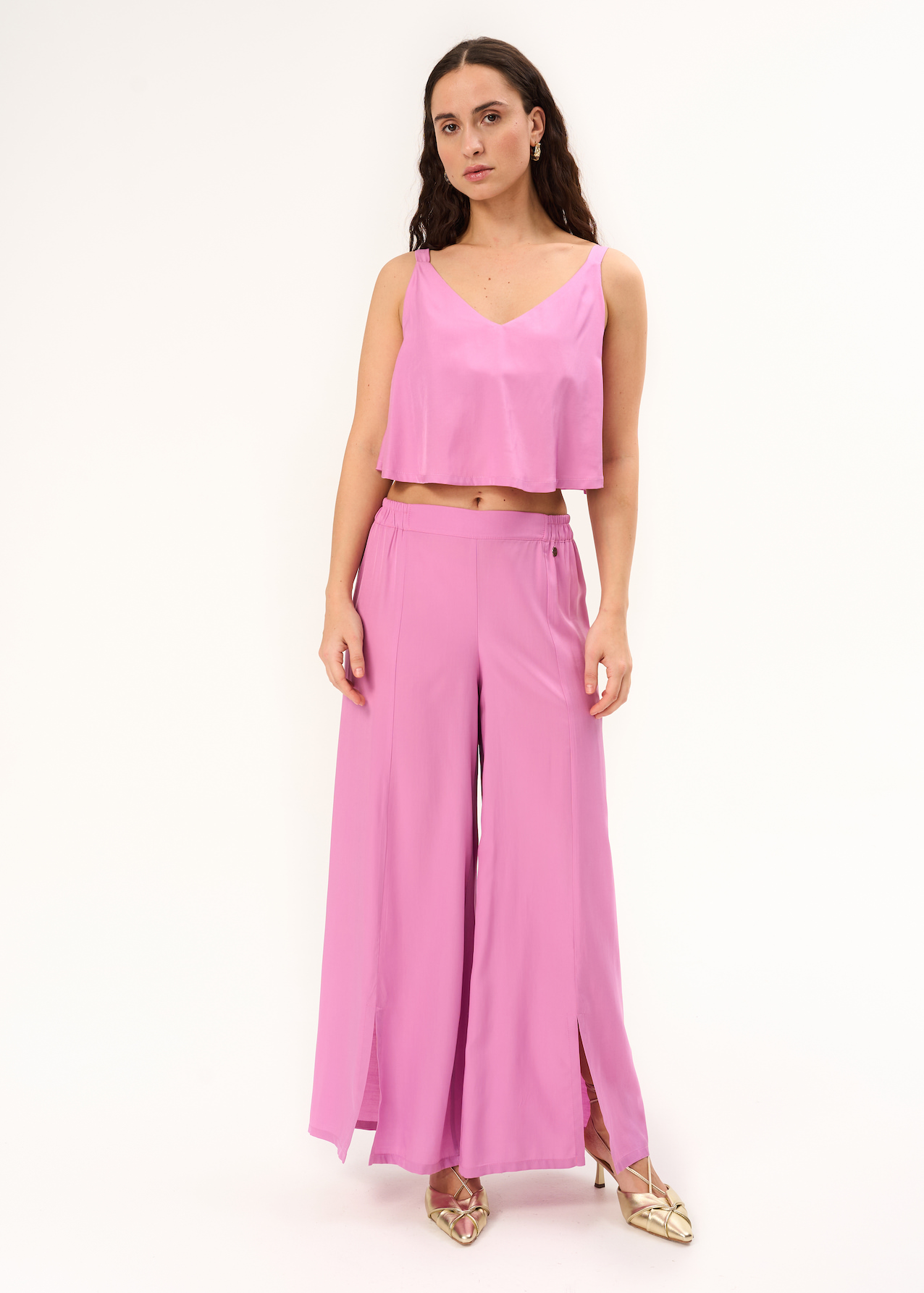 Топ розовый укороченный. Свободная модель из струящийся ткани. Топ без рукавов на бретелях с глубоким V-образным вырезом. Без застежки.