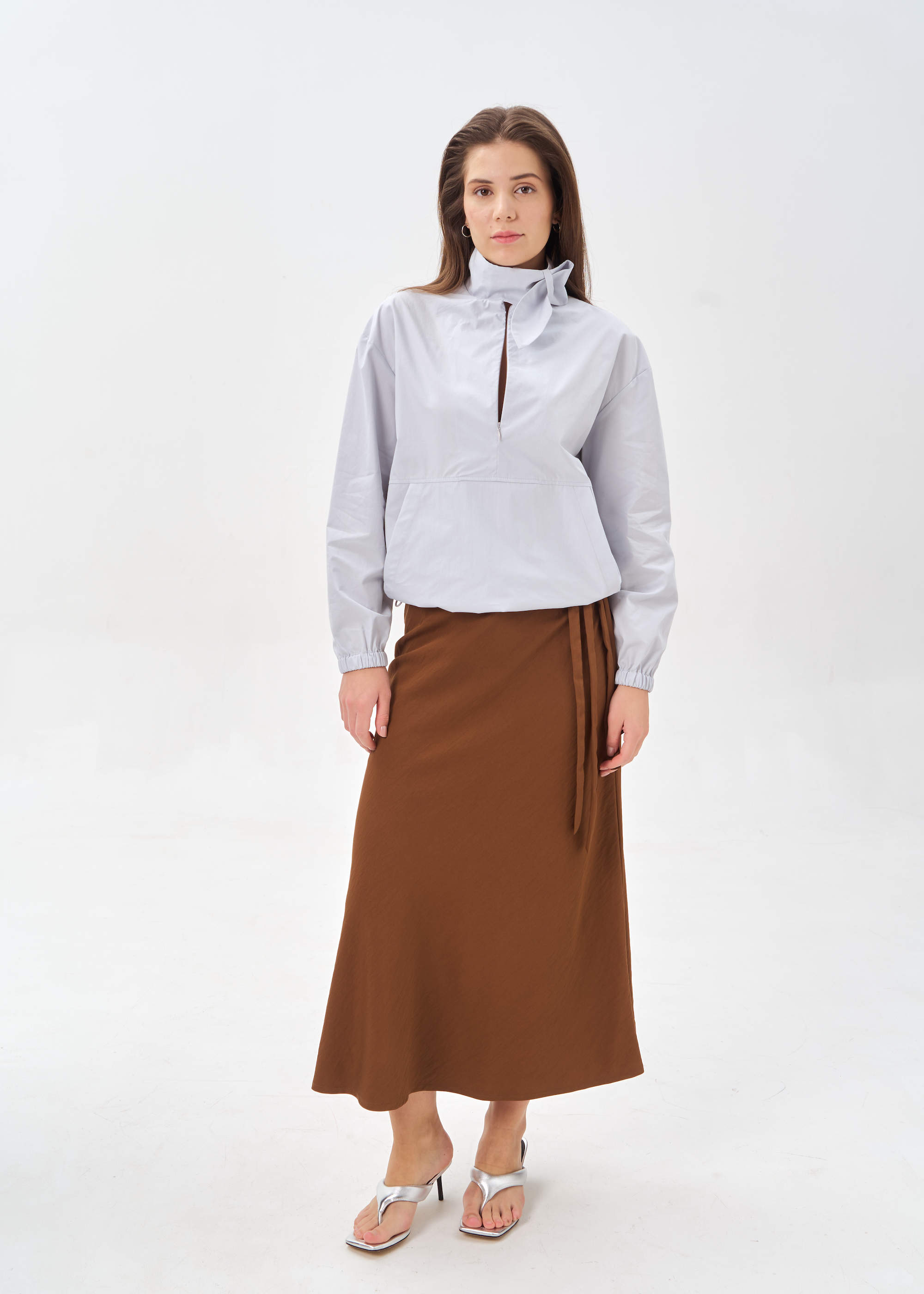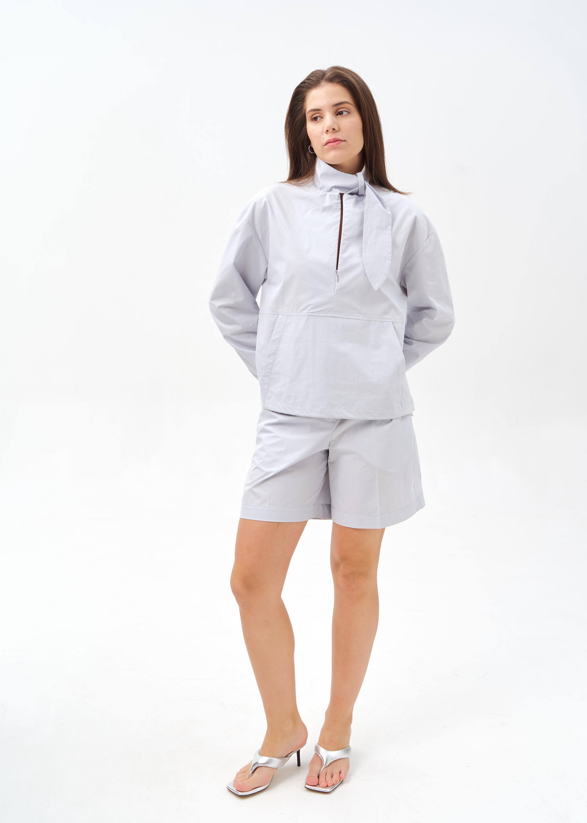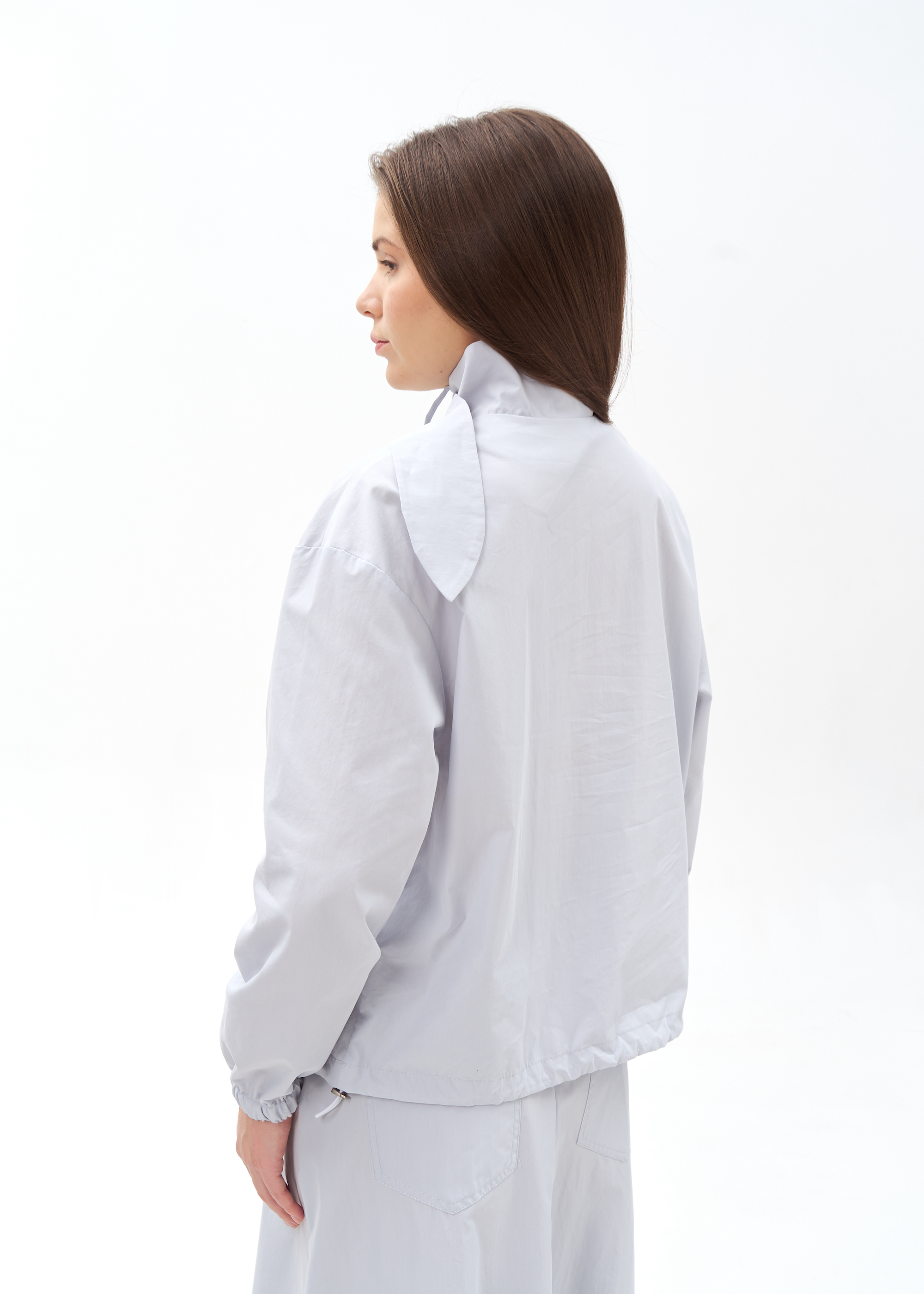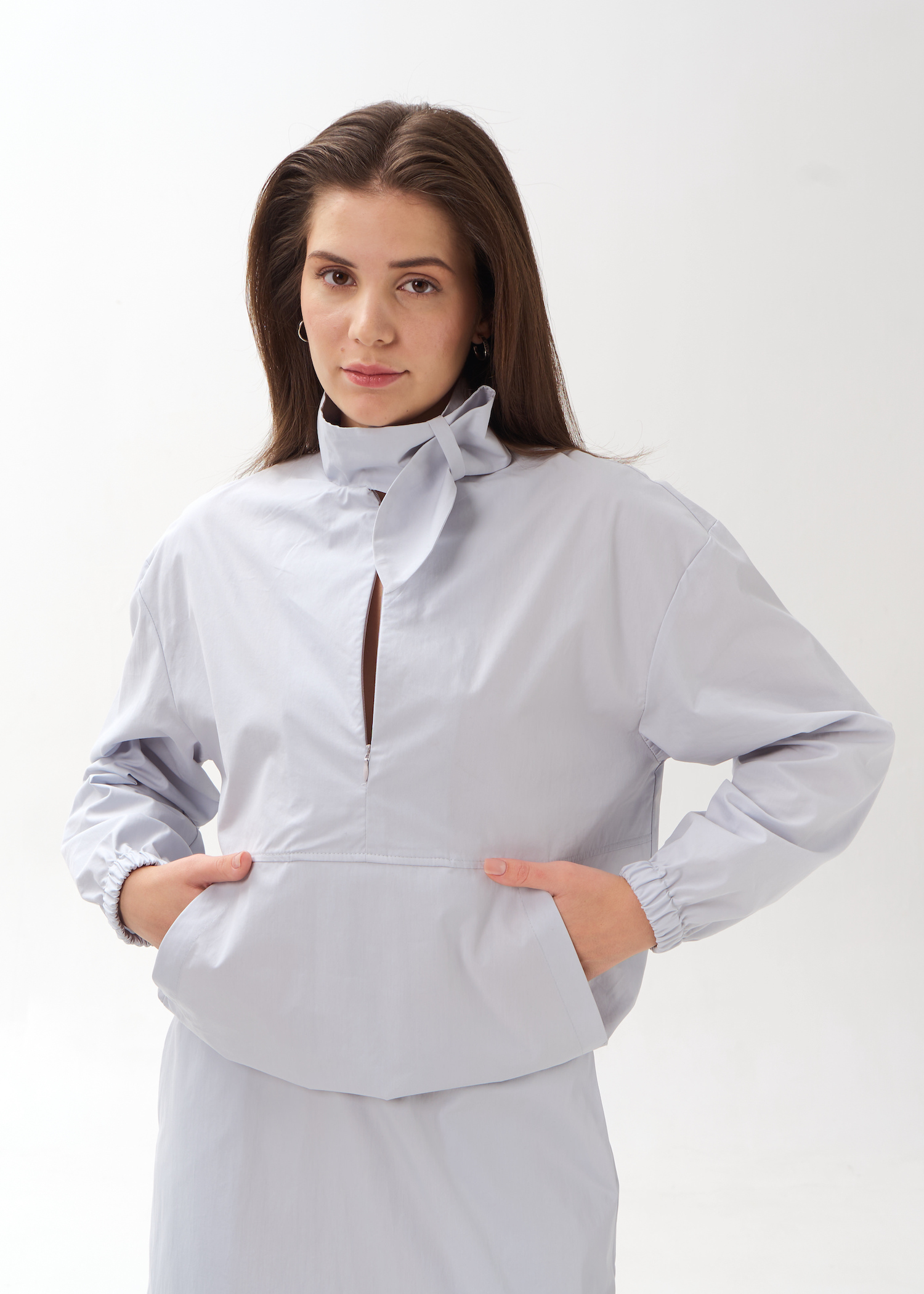 Голубой блузон с интересным воротником